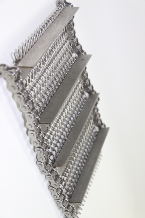 相呼應(yīng)的狀態(tài)也可以給金屬輸送帶一種支撐。能有效的減少輸送帶的磨損,已達到使用壽命較長,客