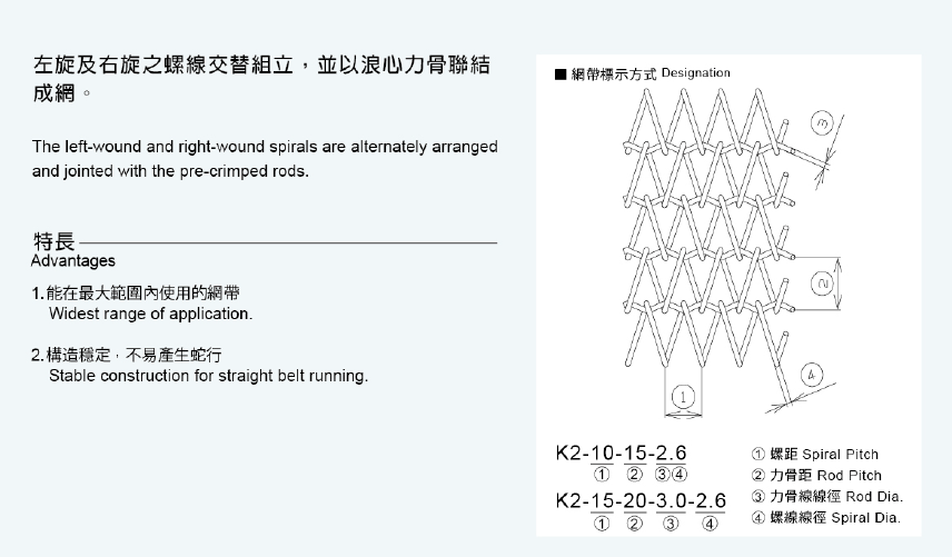 產(chǎn)品名稱:K2網(wǎng)帶(平衡型網(wǎng)帶)